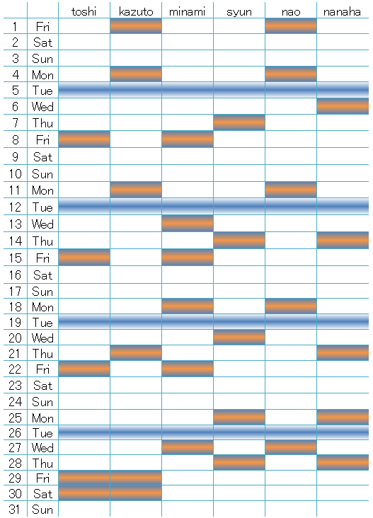 空白が出勤日です