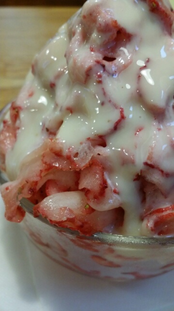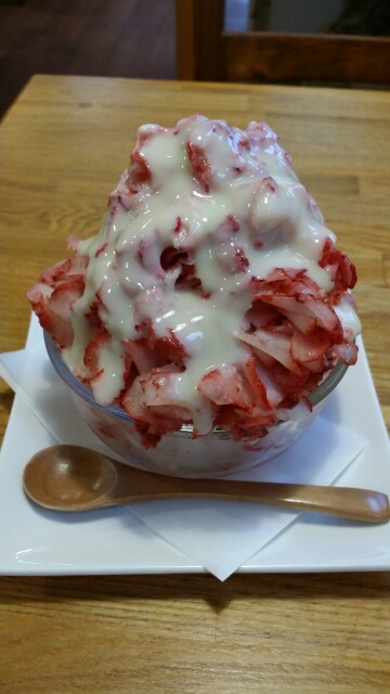 こんにちは! だいぶ暖かくなりましたね♪ 春といえばいちご(^з^) イロイロなところで「いちごフェア」を見かけるようになってきました! お客様とそ~んなお話しをしていて、皆様にお見せしたいものがあったのでUPしちゃいます! こちら!吉見町にある『happy time』さんのかき氷 “恋いちご” よーくみて下さいね。注 かき氷 なんですが。 よぉーくみて下さい(笑) これ赤いのはシロップではありません!!!! そう。いちごをそのまま凍らせて、薄~くスライスしただけの苺100%のかき氷??? なんて贅沢!!!! いまの季節に“恋いちご”を販売されているかは不明なのですが、パンやコーヒー。パンケーキなども美味しいカフェです♪ お花屋さんの一角にあるので、ふら~っとお出かけの際に寄ってみるのもお薦めです。 この辺り、桜の季節はサイコー!(笑) これからは近いところで、いちご狩りの催しもあるはずですょ。 是非お薦めいたします(^_^)/