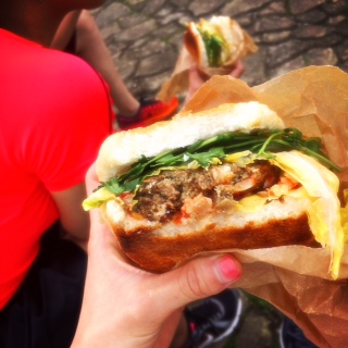 写真は、ジョギングの時に料理上手な友達が作ってくれたサルサバーガー(アロイマークです!)と、カオマンガイ♡