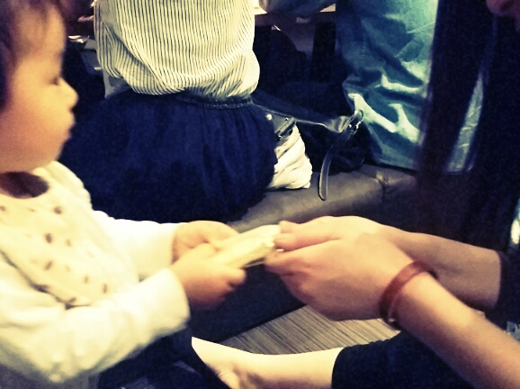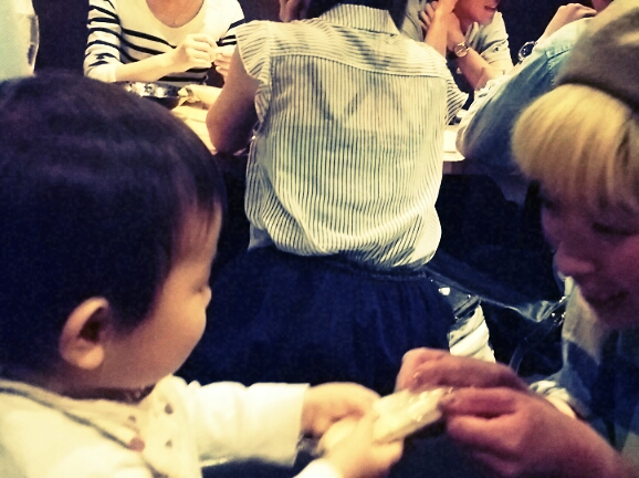 ♪mahiru♪ こんにちは! トシヨーコさん+カヨさんのbaby子ちゃん達とのふれあい会(という名の飲み会・笑)のヒトコマです! この日はトシヨーコさんのbaby子ちゃんが絶好調(^з^) チビッ子大好きおせんべい←白いやつですね。 を「どーじょ」して回っていました☆ なんて天使?! みんなメロメロになっていました~♪ 二人とも少しずつナニカを話すようになってきて、ますます天使になってます(^з^)/ 癒しの時間でした☆