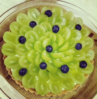 今日はちょっと高級フルーツ、シャインマスカットのレアチーズタルトです。