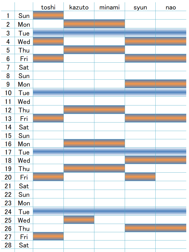 空白が出勤日です